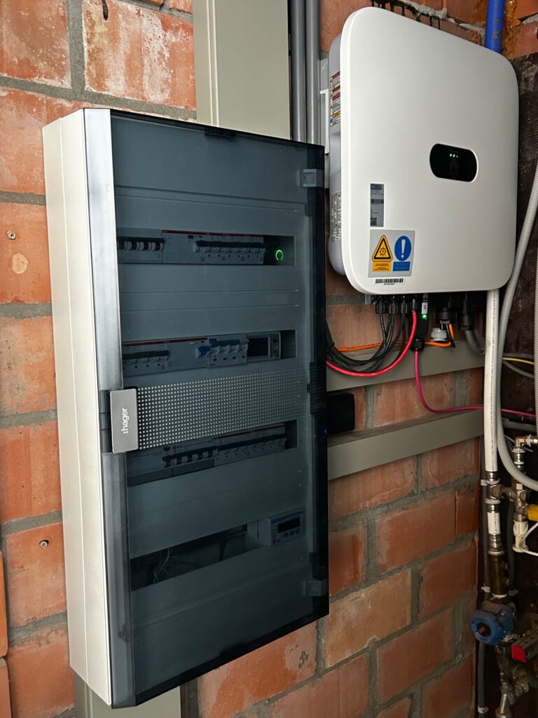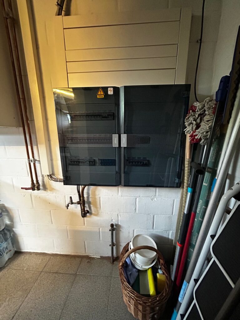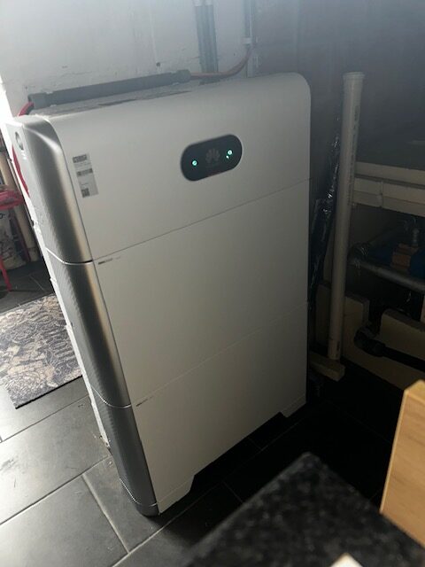 Huawei thuisbatterij geplaatst op een afstand van 8 meter tegenover de omvormer en ele kast is een mogelijkheid.